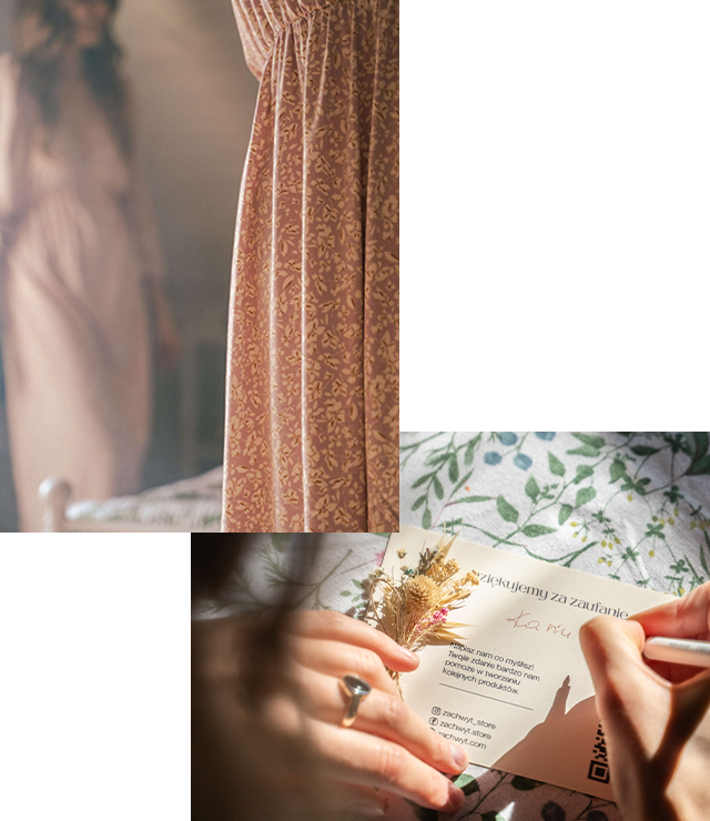 Za marką ZACHWYT stoją ludzie, pasja i lokalne rzemiosło. Każdy projekt to efekt naszej miłości do mody, szacunku do środowiska i potrzeby tworzenia rzeczy, które nosi się z dumą. Odkryj, jak powstają nasze kolekcje – blisko, odpowiedzialnie i z sercem.