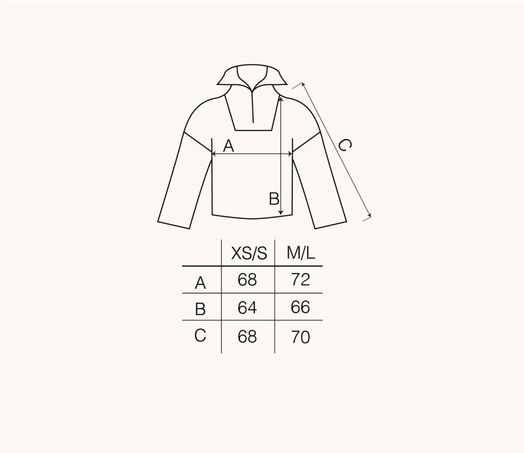 Przy wyborze rozmiaru sprawdź naszą tabelę wymiarów. Bluza ma oversizowy krój, dlatego oba rozmiary wypadają dość luźno. Warto kierować się przede wszystkim długością całkowitą oraz długością rękawów.