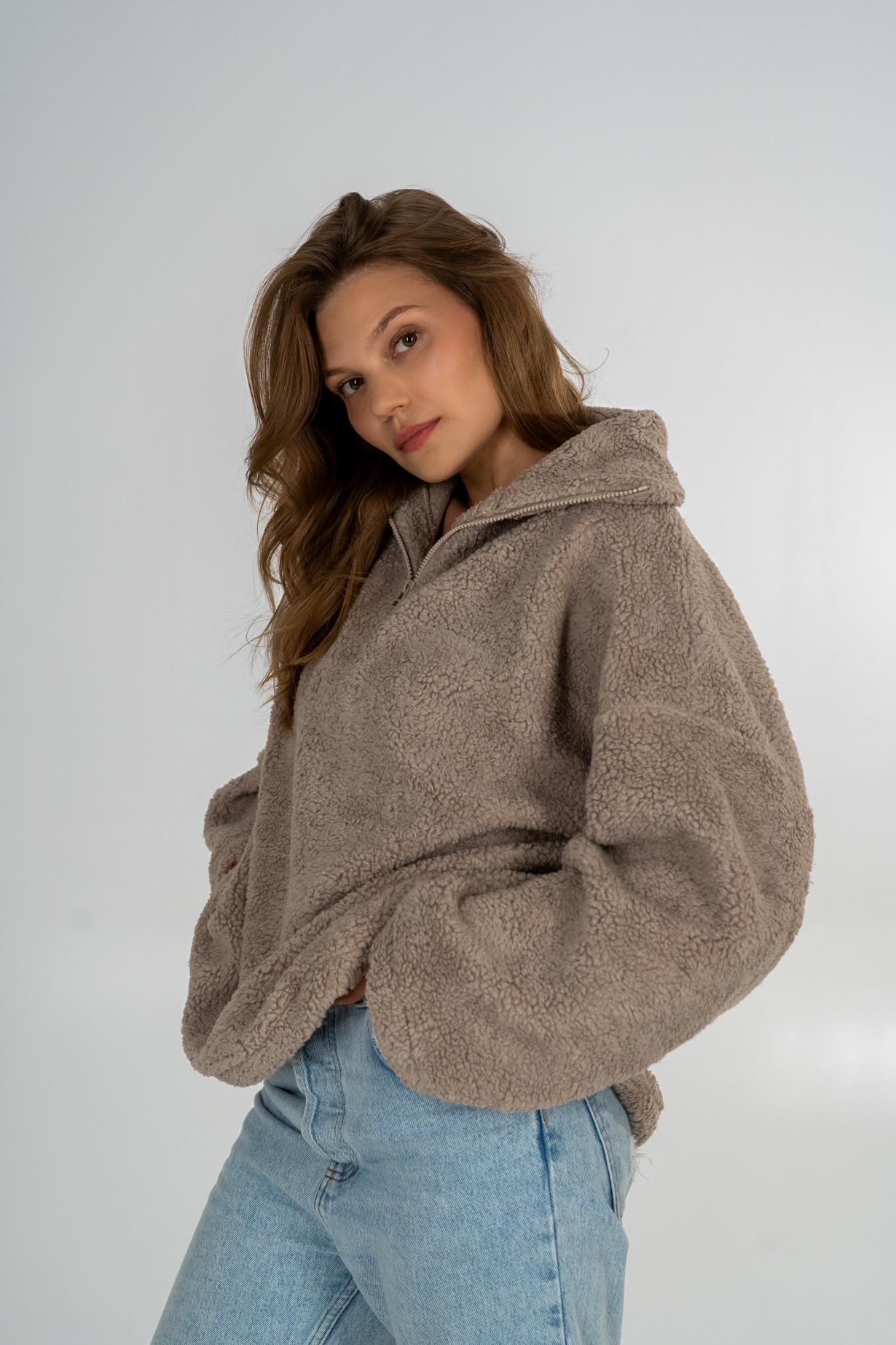 Nasza nowa bluza z dzianiny o miękkiej, pluszowej fakturze otuli Cię ciepłem i komfortem niczym koc.