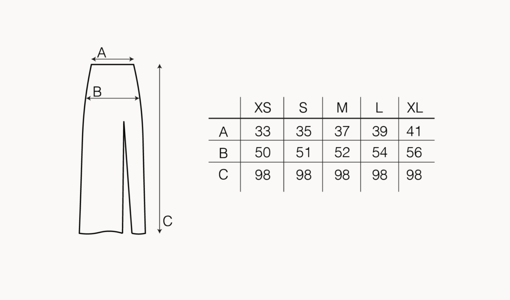 Aby idealnie dobrać rozmiar spódnicy, pamiętaj, że jest zapinana na kryty zamek, a materiał nie jest elastyczny, dlatego kluczowe jest dopasowanie w talii. W biodrach spódnica zapewnia więcej miejsca, dzięki czemu wygodnie się układa. Zachęcamy do skorzystania z tabeli rozmiarów, aby precyzyjnie dobrać odpowiedni rozmiar.